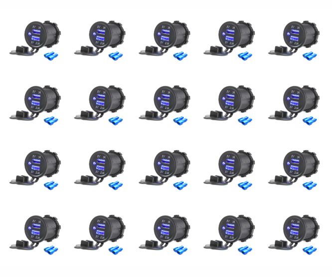 12 Vdc To 5 Vdc Dc Dc Converter Automotive / Panel Mount Dual Usb Socket 5 V 1 A And 2.1 A With Led Indicator, Input = 6 V~30 V Dc, Priced Per Bag