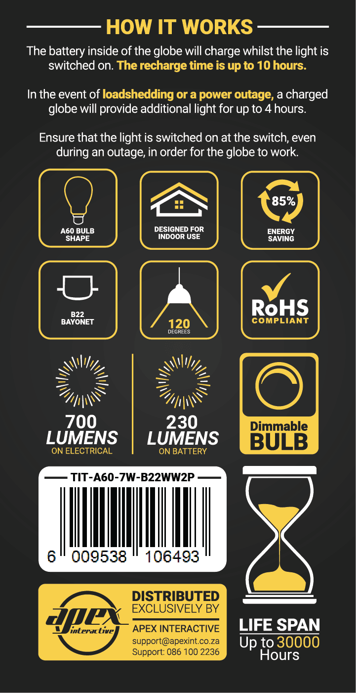 Elecstor B22 7 W Rechargeable Warm White 2 Pack