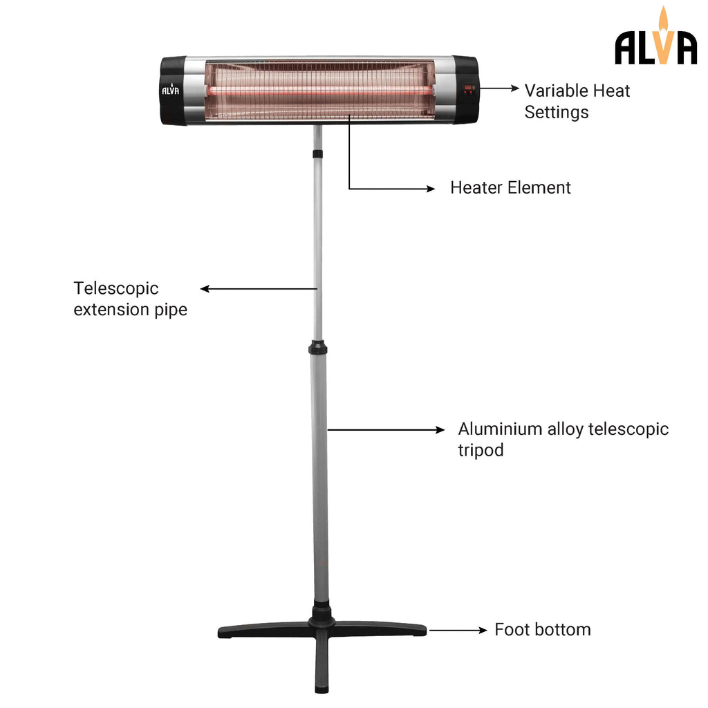 • Engineered for comfort and safety, the Alva Height Adjustable Telescopic Heater delivers powerful warmth exactly where you need it.