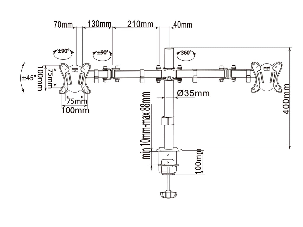 This articulating desk mount is perfect for those looking to optimize their workspace by freeing up desk space and improving ergonomics. The easy installation process, guided by a graphic included in the package, allows you to set up your monitors without the need for professional assistance. Whether you're working from home or in an office, this dual monitor bracket enhances your productivity by providing a flexible and organized display setup.
