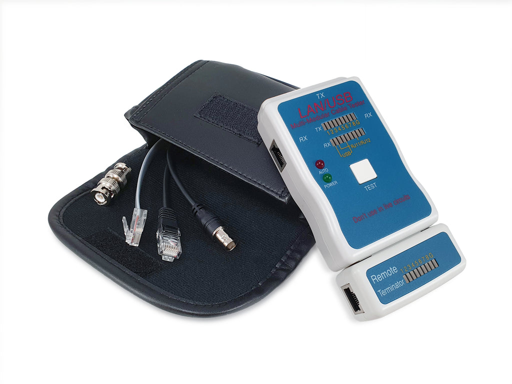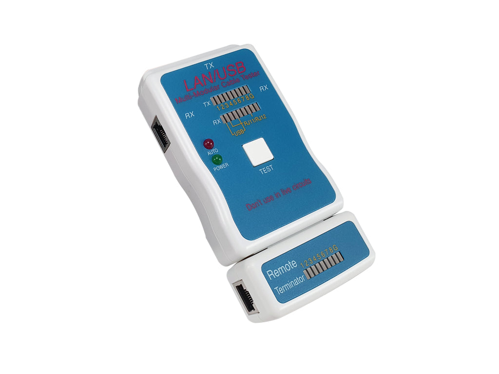 - Extensive diagnostic display for pin-out and pair display for various standards including 10baseT, 100basetx, 10base2, and USB.