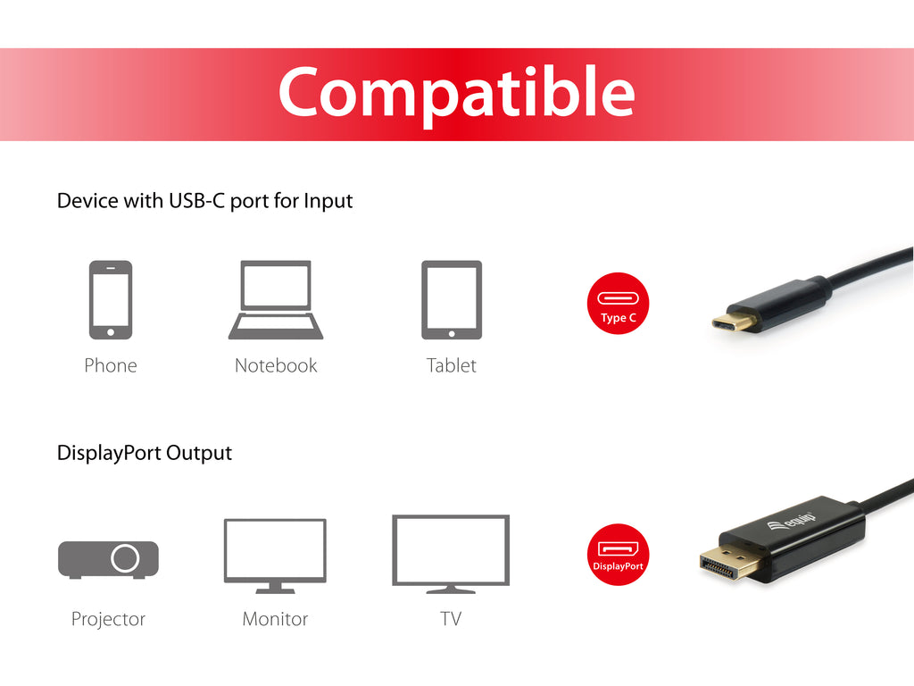 Equip USB-C to DisplayPort Cable 1.8m 4K 50/60Hz