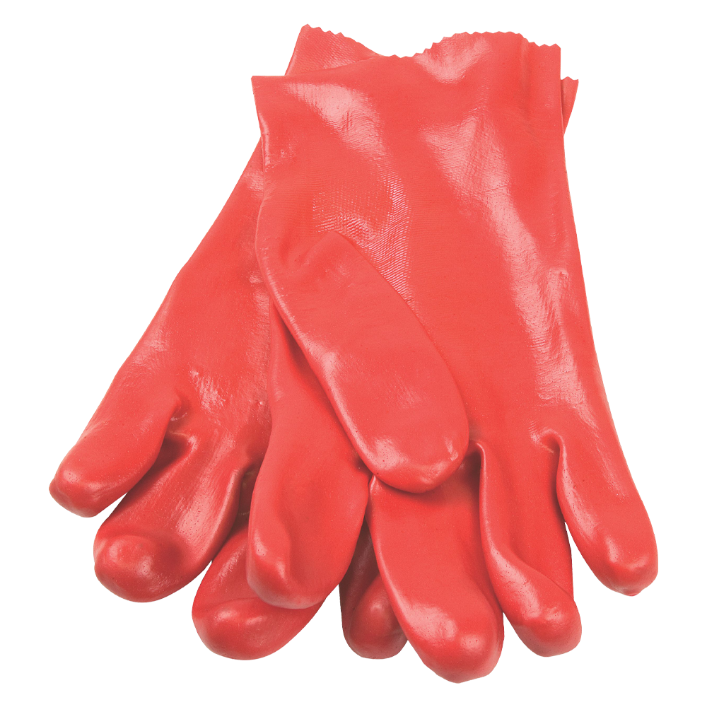 Medium weight 270mm open cuff. RED PVC Glove