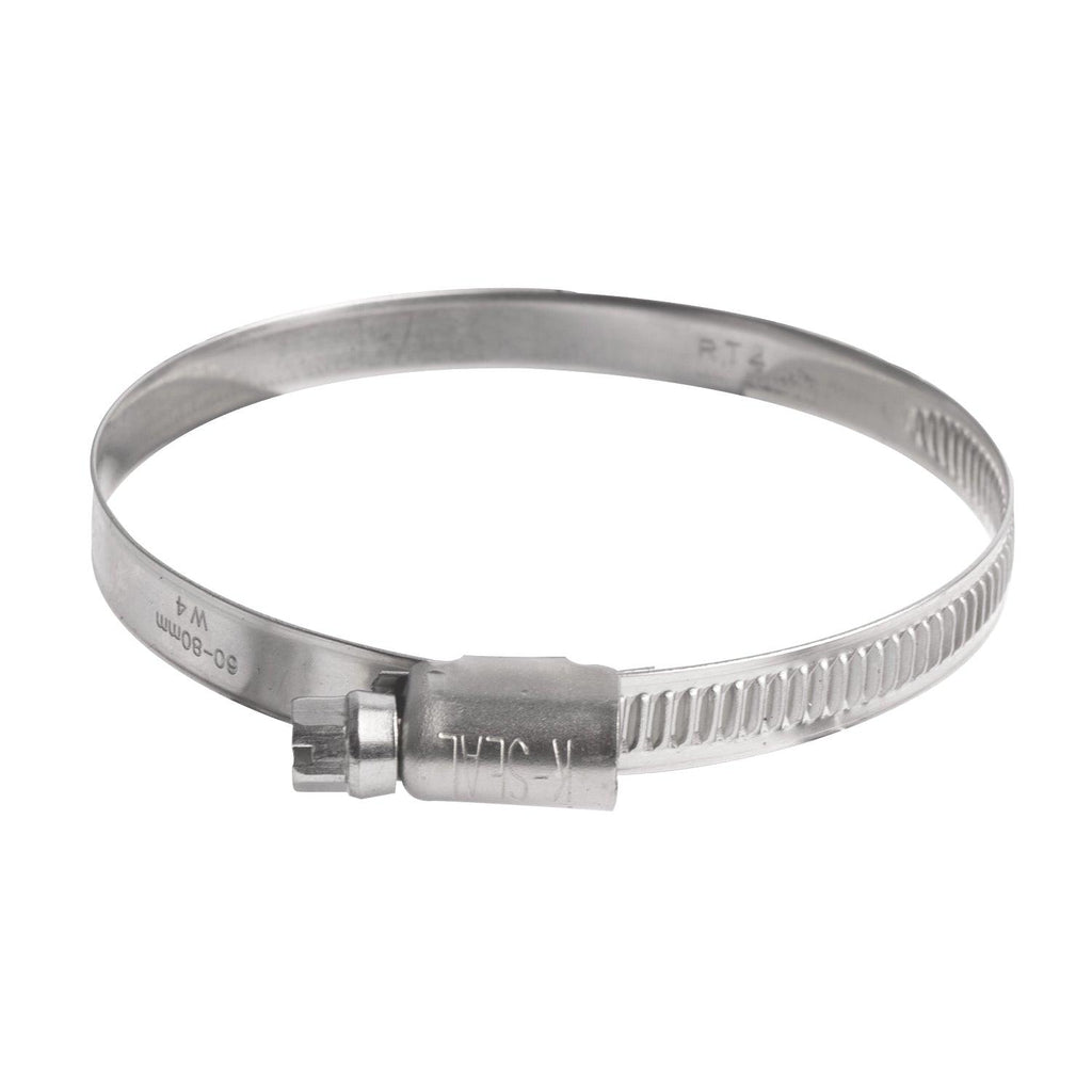 This Soft Hose Clamp Is Sized For Hoses With Outer Diameters Between 60 Mm And 80 Mm. It Uses A Softer Band Or Protective Lining To Clamp Soft Or Flexible Hoses Without Cutting Into Them. The Worm Gears Engage In Grooves On The Outer Surface Of The Clamp Ring, So The Gear Teeth Never Contact The Hose Itself���Preventing Marring Or Abrasion. Supplied In Bulk Packs For Industrial, Plumbing, Or Workshop Use.