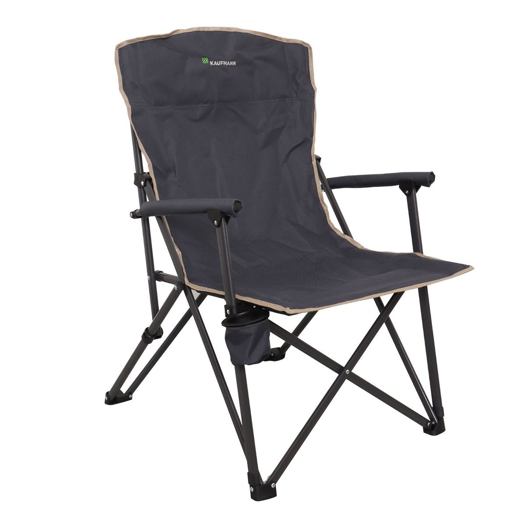 Experience Reliable Seating Wherever Your Adventures Take You With Our Hard Arm Camping Chair. Designed For Durability And Comfort And This Chair Provides A Sturdy And Supportive Seating Option For All Your Outdoor Activities. High Back: Provides Stable Support And Comfort. Durable Construction: Heavy Duty Steel Frame And 600 D Padded Fabric. High Weight Capacity: Supports Up To 150kg. Easy Setup: No Assembly Required; Simply Unfold. Compact Storage: Folds Into A Compact Size For Easy Storage. Portable: Lightweight Design With A Durable Shoulder Bag. Versatile Use: Ideal For Camping, Fishing, Beach Trips, And More. Extra Comfort: Padded Armrests And High Back Support. Convenient Cup Holder Included. Warranty: Comes With A 1 Year Warranty. Specifications: Open Size: 61cm (Length) X 72cm (Width) X 96cm (Height) Frame: 25 X 16 X 0.8mm Steel Tube Frame With Powder Coating Fabric: 600 D Solid Polyester With Pvc Coating Carry Bag: 300 D Polyester With Pu Coating, Chari Weight: 4 Kg, Weight Limit: 150kg. Store Indoors In A Cool, Dry Location Out Of Direct Sunlight, If Wet, Dry Thoroughly Before Storing. Do Not Exceed The Maximum Weight Load Of 150 Kg. Avoid Bouncing Or Jumping On The Chair.