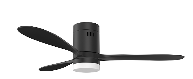 The Motor Hugger Ceiling Fan in sleek black with 1320mm wooden blades and integrated LED Light Kit is designed for style and space-saving performance. Its flush-mount design is perfect for low ceilings, while the included remote control ensures effortless operation.