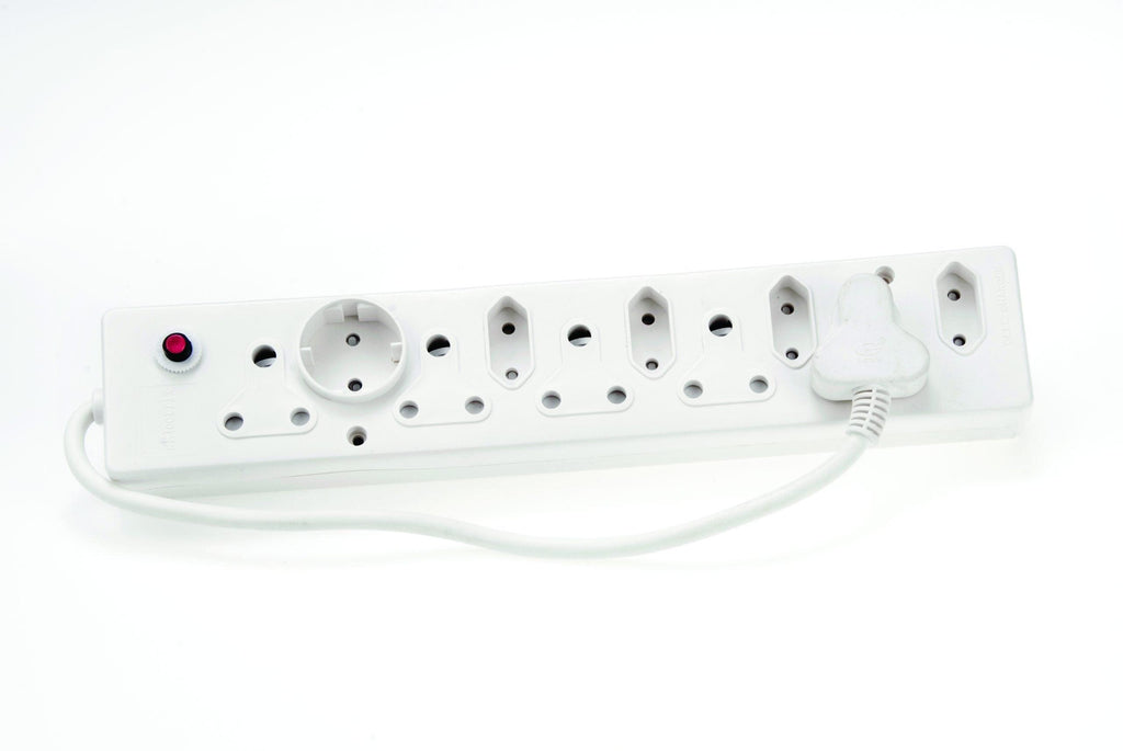 10 Way Multiplug - Fit five 3 pin 16 Amp plugs one round shuko plug ( RSA standard only) and four euro two pin plug - None switched - overload switch. Comply to regulation as set by regulator - SABS/NRCS