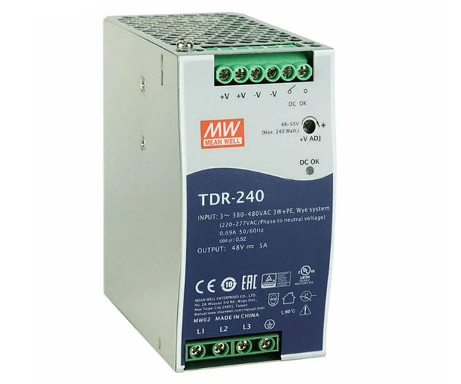 Din Rail Mount, Two Or Three Phase Power Supply. In=340 550 Vac / 480 780 Vdc, Out=48 Vdc 5 A.