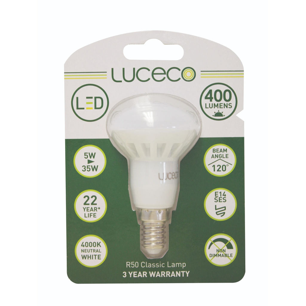 R50, 1 Pc, E14, 5 W, 400 Lm, Neutral White, Non Dim Led Globe