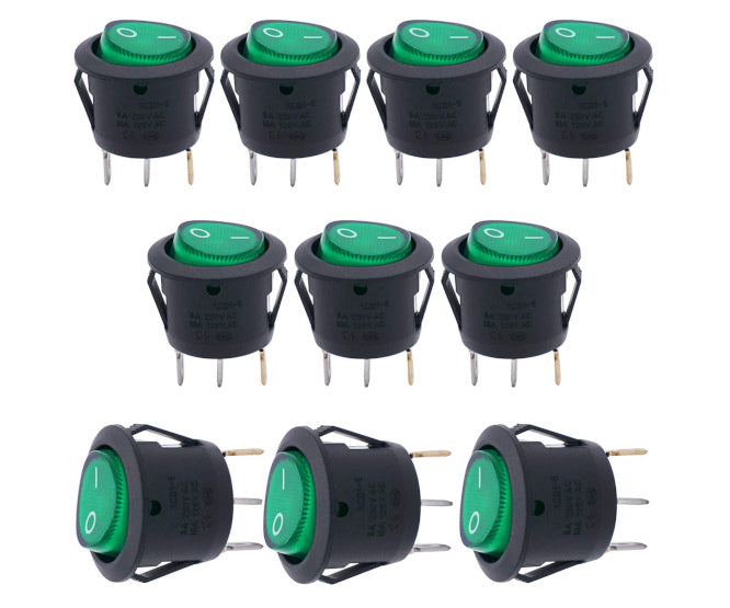 Round Rocker Switch 240 Vac 6 A Gr Spst Illuminated 100/Bag Kcd1 5 101 N 220 Gr