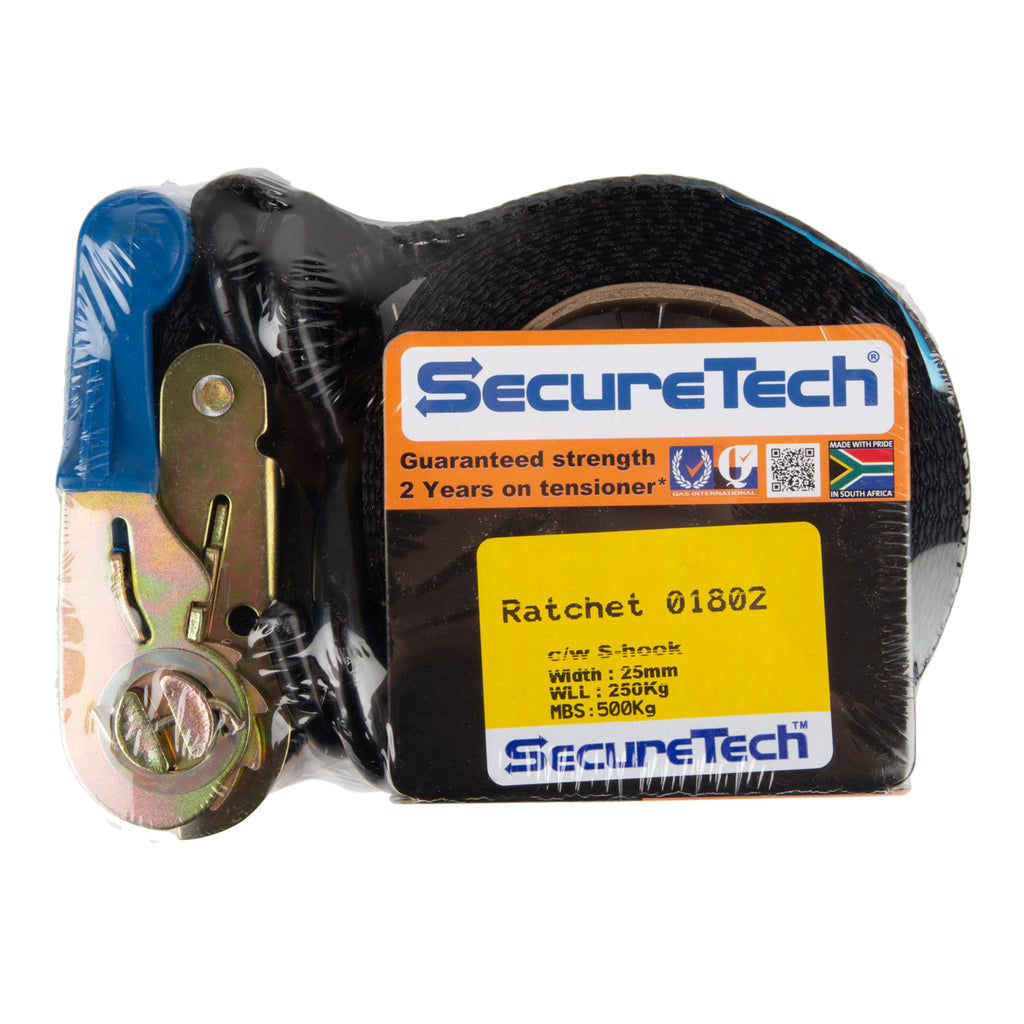 Ratchet Strap Assembly. Webbing Width: 25mm. Minimum Breaking Strength: 1000 Kg.The Strap Assembly With Ratchet And Hook Is A Reliable And Robust Solution For Securely Fastening And Tightening Loads During Transportation. With A Length Of 4 Meters And A Width Of 25mm; This Ratchet Strap Assembly Has A Maximum Load Capacity Of 500 Kg; Making It Suitable For Various Light To Medium Duty Applications.
