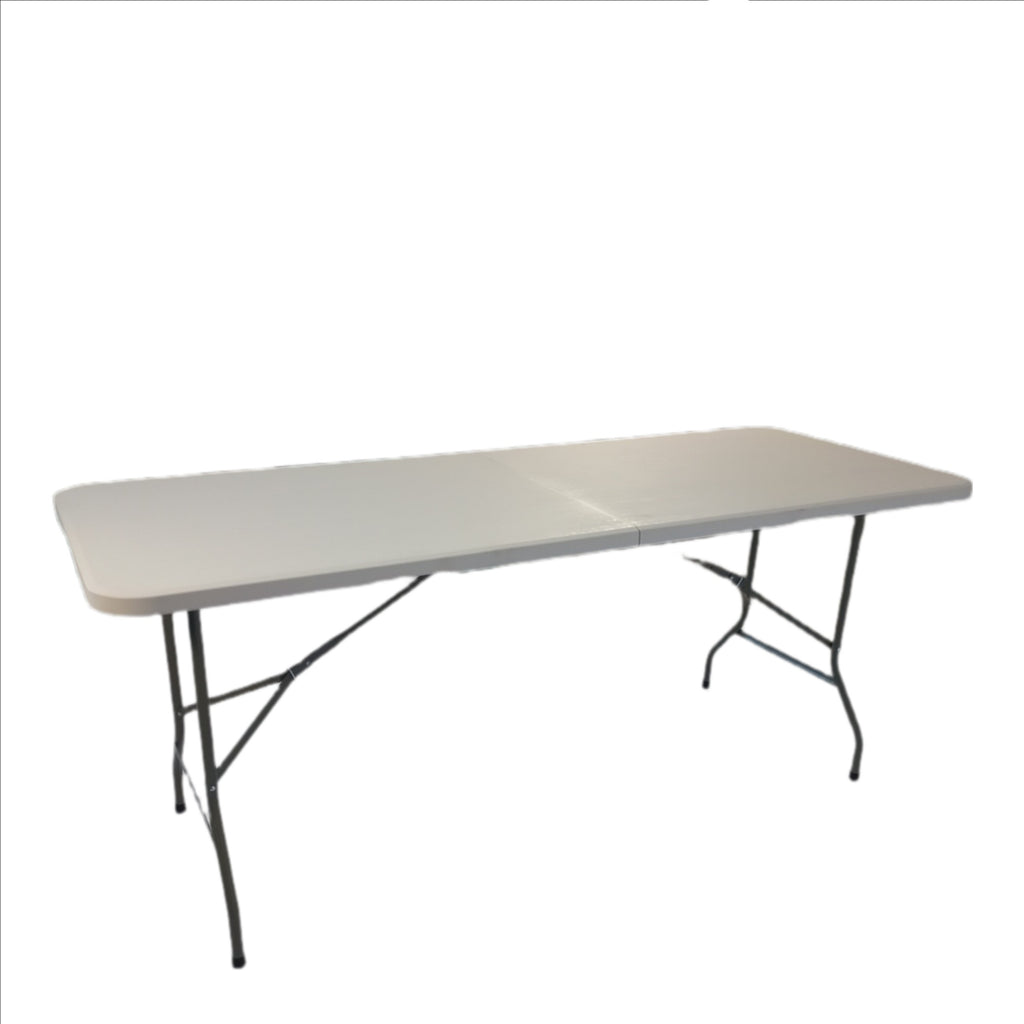 Don’t let your food and catering end up on the floor. This sturdy 1,8m white long table is just what you need for entertaining without the worry of your food ending up on the floor. Folds-in-half for easy storage.