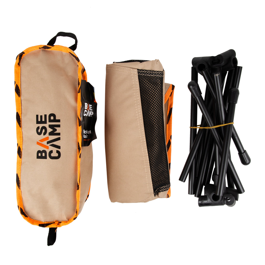 The Basecamp Bucket Camping Chair With A Wide Seat Is Designed For Ultimate Portability And Comfort, Perfect For Outdoor Activities Like Backpacking, Camping, Hiking, Beach Trips, Picnics, And Braais. Its Bucket Design (60cm Wide Seat) Ensures A Comfortable And Supportive Seating Experience.**Features And Benefits: Comfortable Seating With A Wide Bucket Design.Compact Folding Frame For Easy Storage And Travel.Breathable Mesh Fabric For Airflow.Safety Lock Keeps Chair Securely Open.Padded Feet For Extra Grip.Durable Iron Tube Frame And 600 D Polyester Fabric With Pe Coating.Versatile Use For Outdoor Activities.1 Year Warranty And Includes A Carry Bag.**Product Specifications:Frame Material: Iron Tube (15*1.0mm).Fabric: 600 D Polyester With Pe Coating, Mesh.Weight Capacity: 120kg. Dimensions: Open Size: 48cm X 34cm X 65cm; Folded: 60cm X 20cm X 20cm **Care Instructions:Store In A Cool, Dry Place Out Of Direct Sunlight. Dry Thoroughly If Wet. Do Not Exceed The 120kg Weight Capacity And Avoid Jumping On The Chair.