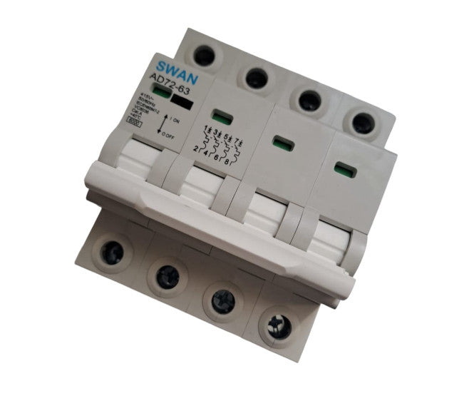 Miniature Circuit Breaker Din Rail Mount, 4 Poles, Current Rating At 50 A With Breaking Capacity Of 6 Ka, C Curve.