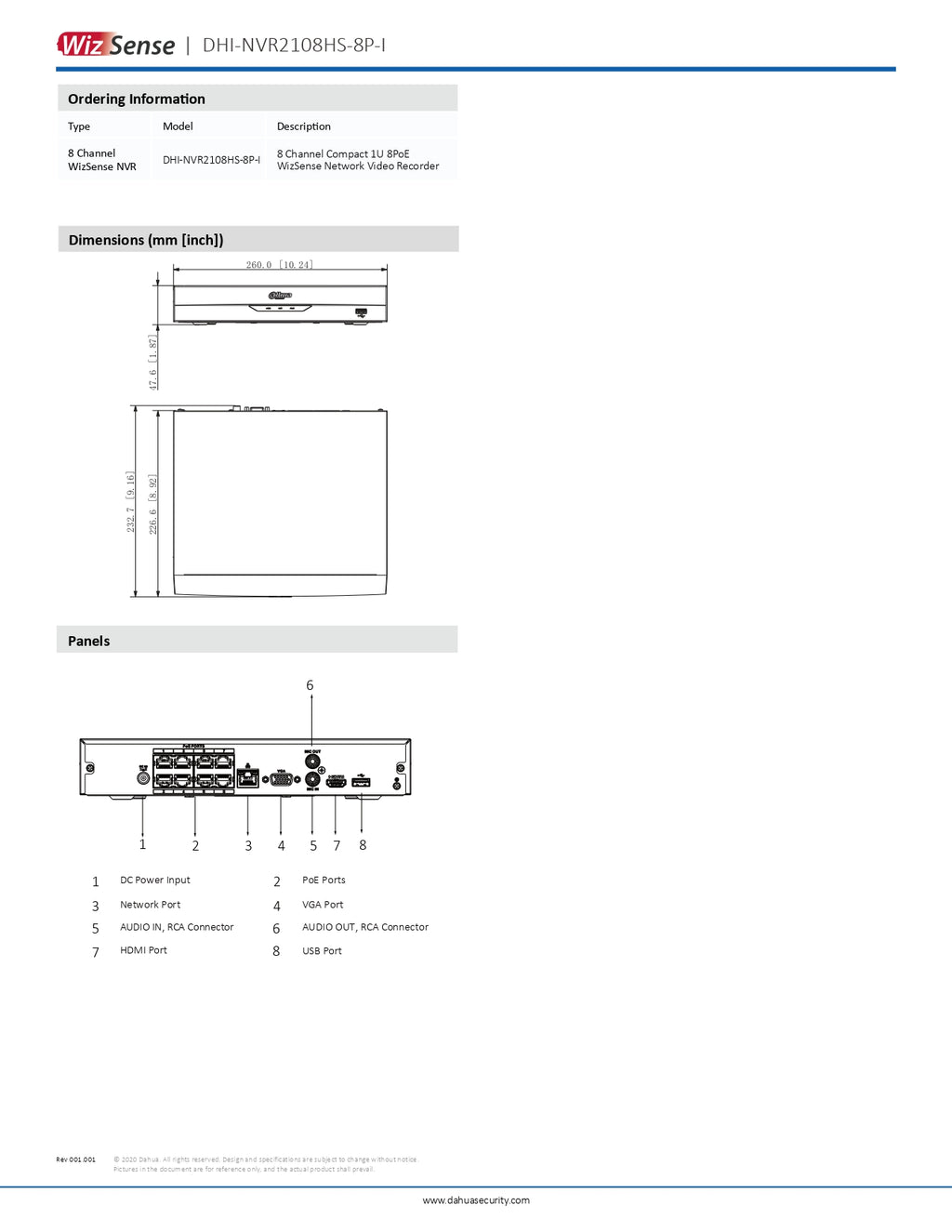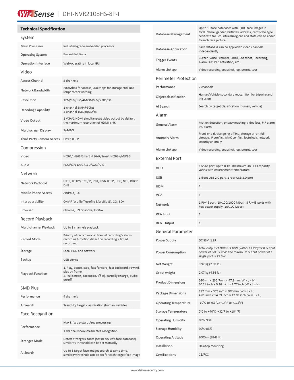 Dahua 8CH AI NVR 72MBPS 1SATA No POE Slot Excl HDD Wizsense