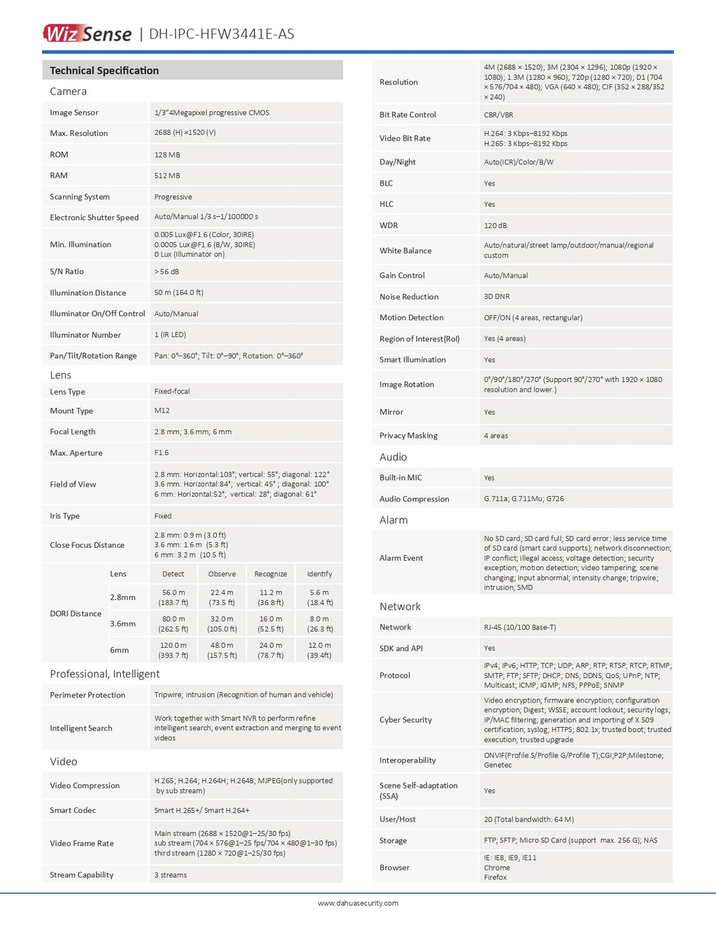 > 4MP, 1/3” CMOS image sensor, low illuminance, high image definition
