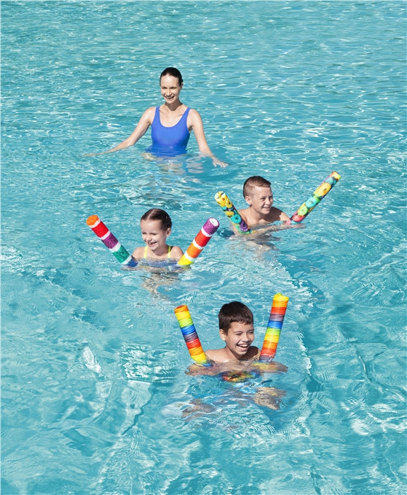 The H2OGO! Sugarcoated Noodles are the sweet treat that your pool day is missing. Choose from four tasty goodies - cereal, gummy bears, cake and licorice - or one of each! The realistic graphics are printed on a soft, stretchy fabric cover, while the inside is made of buoyant foam. The fabric cover allows these noodles to last longer than noodles without this type of cover. Kids ages 6-12 can stay afloat on these bright Sugarcoated Noodles while they swim and play in the sun this summer!