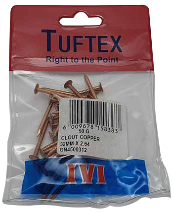 NAIL CLOUT COPPER 32MMX50G PRE PACKED TUFTEX