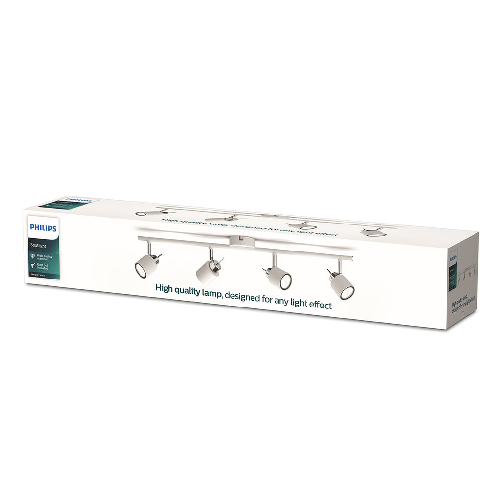 The Philips Miranti Bar/Tube White 4 X35 W 230 V Is A Modern And Versatile Spotlight Fitting Designed For Directional Lighting In Residential Or Commercial Spaces. It Accommodates Two Gu10 Lamps (Up To 35 W Each) And Allows Precise Aiming For Accent Or Task Lighting. Supports 4 X35 W Gu10 Lamps (Lamps Not Included) .Adjustable Spotlight Heads For Focused Lighting. Sleek White Bar Design Complements Various Decor Styles. Ideal For Kitchens, Hallways, Lounges, Or Shop Displays. Operates On Standard 230 V Mains Power , Ceiling Or Wall Mountable For Flexible Placement. Durable And Easy To Install. This Dual Spot Fixture Provides Functional And Aesthetic Lighting, Allowing Users To Highlight Artwork, Surfaces, Or Workspaces While Maintaining A Clean And Modern Look. Practical Philips Spot Light Ideal For Your Home; Choose The Philips Gu10 Led Bulb To Match The Style Of The Spotlight And Achieve Excellent And Long Lasting Lighting