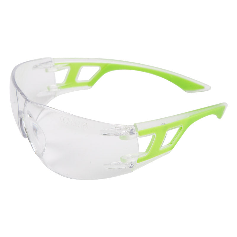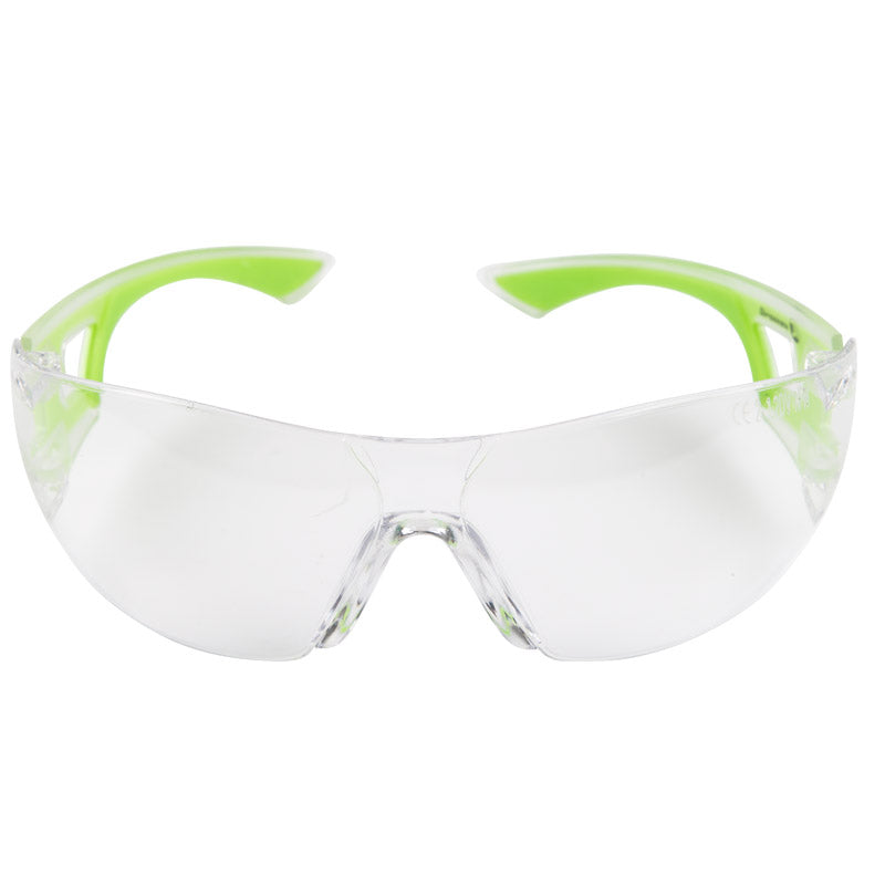 Safety Spectacles Sporty Cool Clear Lime; Polycarbonate Mono Lens; Cool Sleek Colour Frame; Ergonomic Design To Fit Snug With The Face Contour; Scratch Resistant Lens; 180 Degree Lateral Vision; Anti Fog Lens.