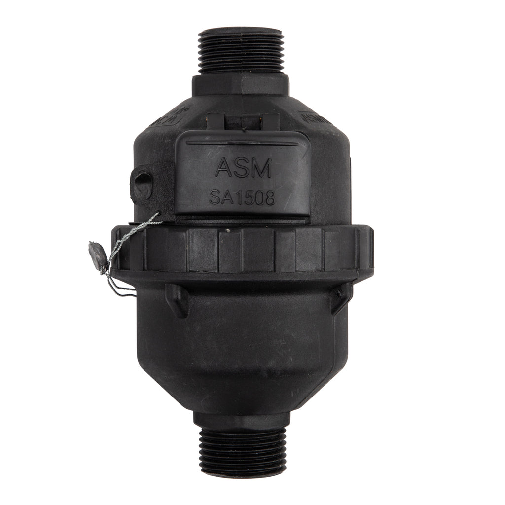 Application * Measures The Volume Of Clean, Cold Water Passing Through A Pipeline.* Domestic Billing Purposes.* Features* Plastic Shell Of Solid And Robust Design For Long Service Life.* Corrosion Resistance, Uv Stabilised, Fibreglass Reinforced Polymer Plastic.* Optimum Accuracy And Performance In Any Position (Horizontal Or Vertical).* Grooved Rotary Piston.* Clear, Easily Read, Liquid Sealed 8 Digit Counter.* Measuring Accuracy Approved To Sans 1529 1.* Internal Non Return Valve And Strainer. * Each Meter Has A Unique Serial Number. * Pulse Prepared. * Inlet And Outlet Threads Compatible With Iso Metric Sizes. * Maximum Permissible Errors * In The Lower Zone From Qmin Inclusive Up To But Excluding Qt Is Plus Minus 5 Percent. * In The Upper Zone From Qt Inclusive Up To And Including Qs Is Plus Minus 2 Percent. * Working Conditions * Working Temperature: 2 Degree Celsius To 40 Degree Celsius. * Nominal Pressure: 1600 K Pa (16 Bar). * Maximum Test Pressure: 4800 K Pa (48 Bar). * Compliance Standard * Conforms To Sans 1529 1:2006 (Class C). * Conforms To Iso4064: Class C. * Installation Requirements * May Be Installed On A Horizontal Or Vertical Pipeline.* Pipeline Must Be Flushed Before Installation. * Meters Should Be Constantly Full Of Water During Operation. * Important Notice * Meter To Be Used With Plastic Tailpieces Or Connectors. * No Hemp To Be Used During Installation. * No Soldering Or Heat To Be Applied During Installation.** Do Not Remove Meter From Installaion As That Will Void Warrenty.