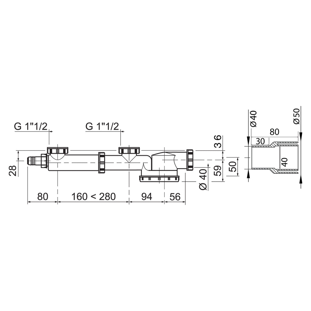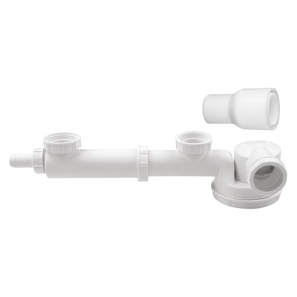 Espace Double Sink Trap And Extension Piece And Washing Machine Connection. * Water Seal: 50 Mm. * Flow: 39 L / Min. * Height Under Sink: 95 Mm. * Centre Distance: 160 500 Mm. * Conforms Or Exceeds Nf Standards. * The Perfect Space Saving Solution Under Your Sink. * Suitable For Bowls With Outer Waste Outlet Centres From 160 To 500mm Apart. * Washing Machine/Dishwasher Outlet With Non Return Valve. * Orientable Outlet; Makes It Easy To Align To Outlet Pipe. * 40mm To 50mm Pipe Adaptor Supplied. * Built In Trap With 50mm Water Seal. * Easy To Clean Access Cap. * Packaging Box