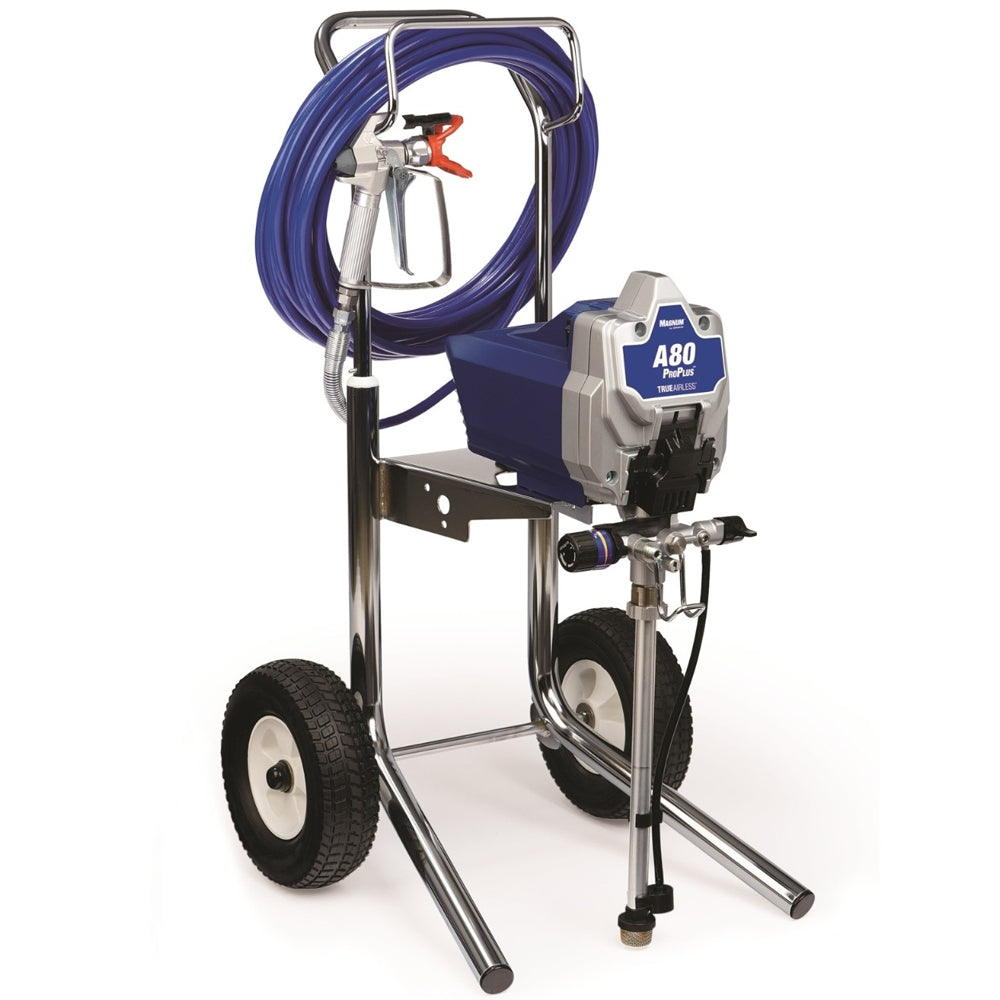 The Magnum A80 Pro Plus Is Designed To Handle A Wide Variety Of Large Sized Interior And Exterior Paint Jobs As Well As Commercial Job Sites. Turn Projects Around Smarter And Faster With The Magnum A80 Pro Plus With Built In Cart. This Workhorse Helps You Save Time And Money By Allowing You To Spray Thicker Materials Due To The 0.5 Cm (0.021 In.) Tip Size. Eliminate Downtime With Fast, On The Job Pump Swaps.