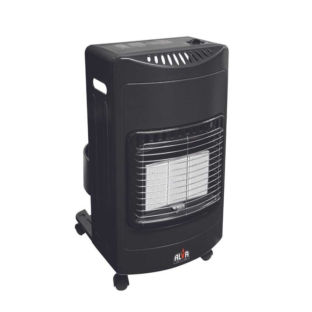 Swivel Castors For Easy Movement. Reduced Gas Odour And Greater Efficiency. Positive Off Valve. Fits All 5/8 Inch Bullnose Cylinder Valves. Three Ceramic Panels With Three Heat Settings. Quickly And Efficiently Heats Up To 50 M2. Hose And Regulator Included.