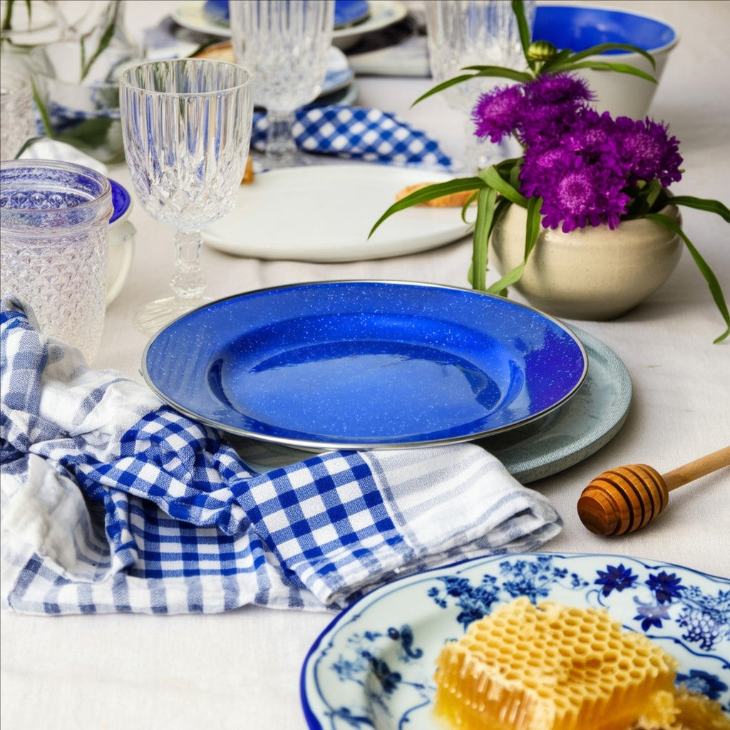 • Speckled navy enamel finish