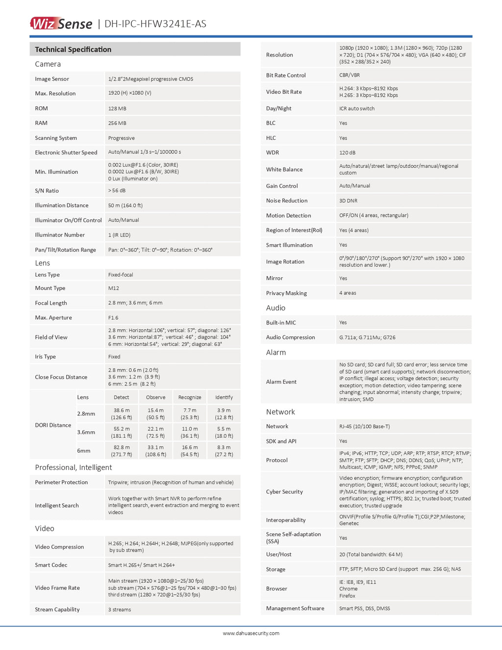 > 2MP, 1/2.8” CMOS image sensor, low illuminance, high image definition