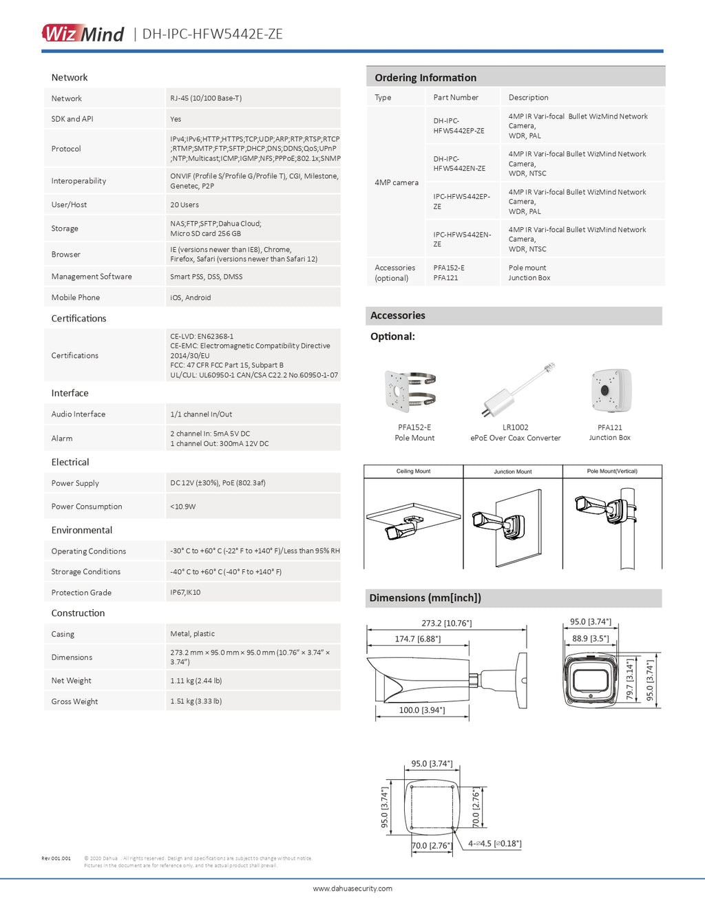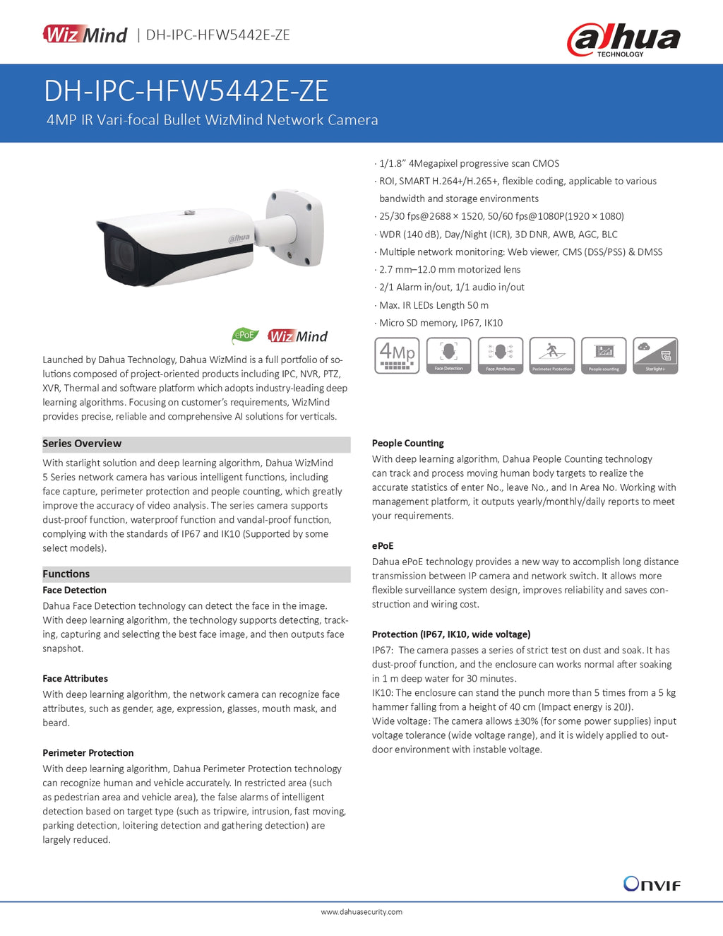 Dahua Cylindrical 4MP 2.7-12MM MOTO LENS 50M IR POE SD SLOT VCA W/AUDIO
