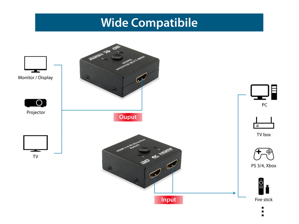 The Equip Switch, 1.4 HDMI Bi-Direction is a versatile device designed to enhance your multimedia experience. This HDMI Bi-directional Switcher/Splitter allows you to easily manage your HDMI connections with ease and efficiency.