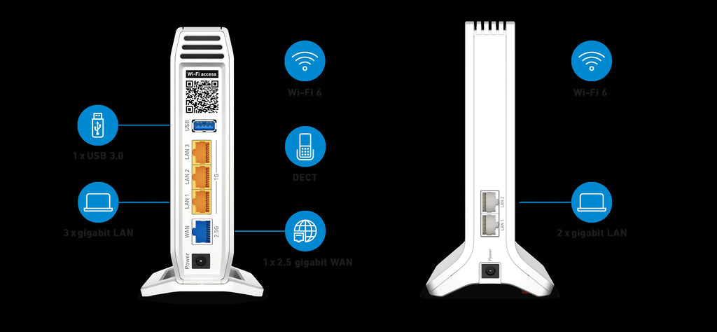 Wi-Fi 6 with up to 6 Gbit/s (1200 + 2400 + 2400 Mbit/s)
