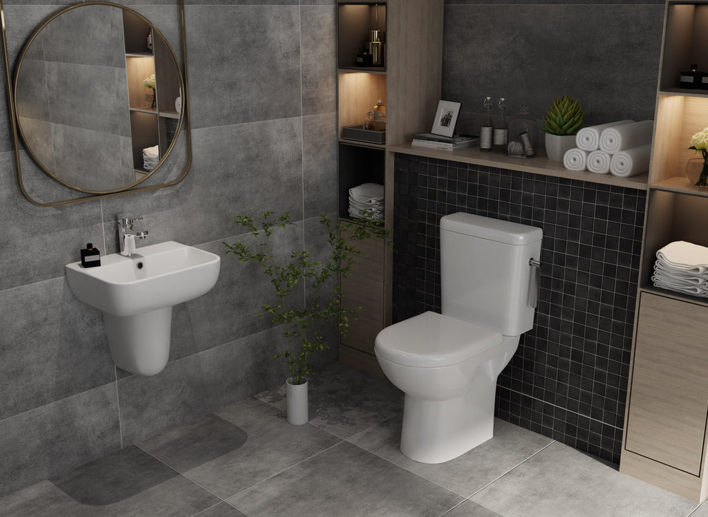 The Comfort Assist Round CC Side Flush Box Set includes a round pan, side flush cistern, assisted mechanism and soft close seat.