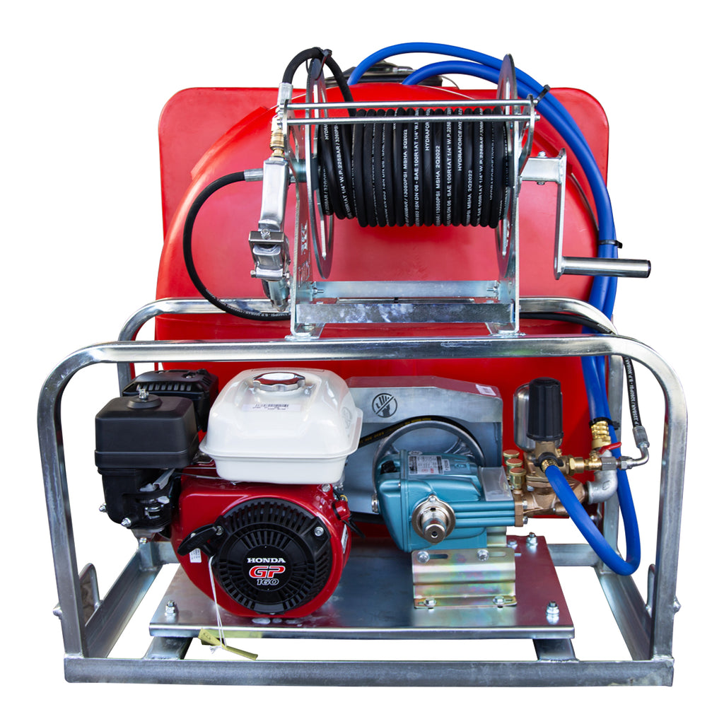 High Pressure Firefighter Ideal For Farmers And Municipal Services. Powered By Honda Gp160 Engine Fitted With A 22 L/Min Piston Pump; Maximum 40 Bar; Round Tank 600 L; Complete Equipped With A 22 L/Min Piston Pump; Suction Hose And Service Pipe. Pistol Grip High Pressure Gun With Ajustable Nozzle. Mounted In Protective Frame. Warranty 12 Months.