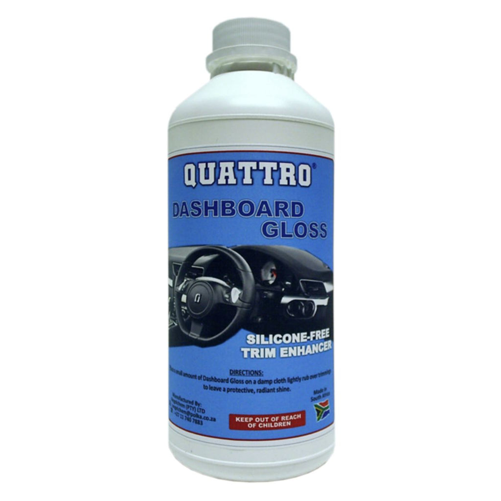 Quattro Dashboard Gloss Is Very Effective In The Enhancing Of General Automotive Interiors Such As Vinyl Dashboards, Door Panels, Trimmings, Rubber Tyres, Leather And Plastic. It Has A Unique Formulation That Brings Back The Shine To Your Vehicles Trimmings. The Strong, Pleasant And Long Lasting Fragrance Also Removes All Unwanted Odours.