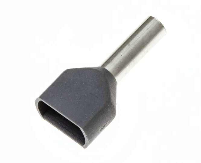 Bootlace / Cord End Terminal Twin. For Two Wire Entry. Grey