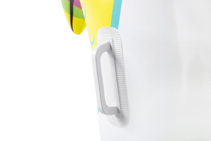 The Bestway Toucan Pool Day Ride-On is a safe and comfortable water chauffeur for any bird-loving kid. This pool float has a large base for safe riding and a large toucan head for fun photos or to rest against. Two sturdy handles make it easy for kids to hang on as they ride and float through the water. The toucan graphics, colors and physical features provide a unique visual appeal. Just inflate and you’re ready for a fun pool day. Deflation and storage is hassle free so you can continue using this inflatable pool float for years to come. Every kid will enjoy a ride on the Toucan Pool Day Ride-On!
