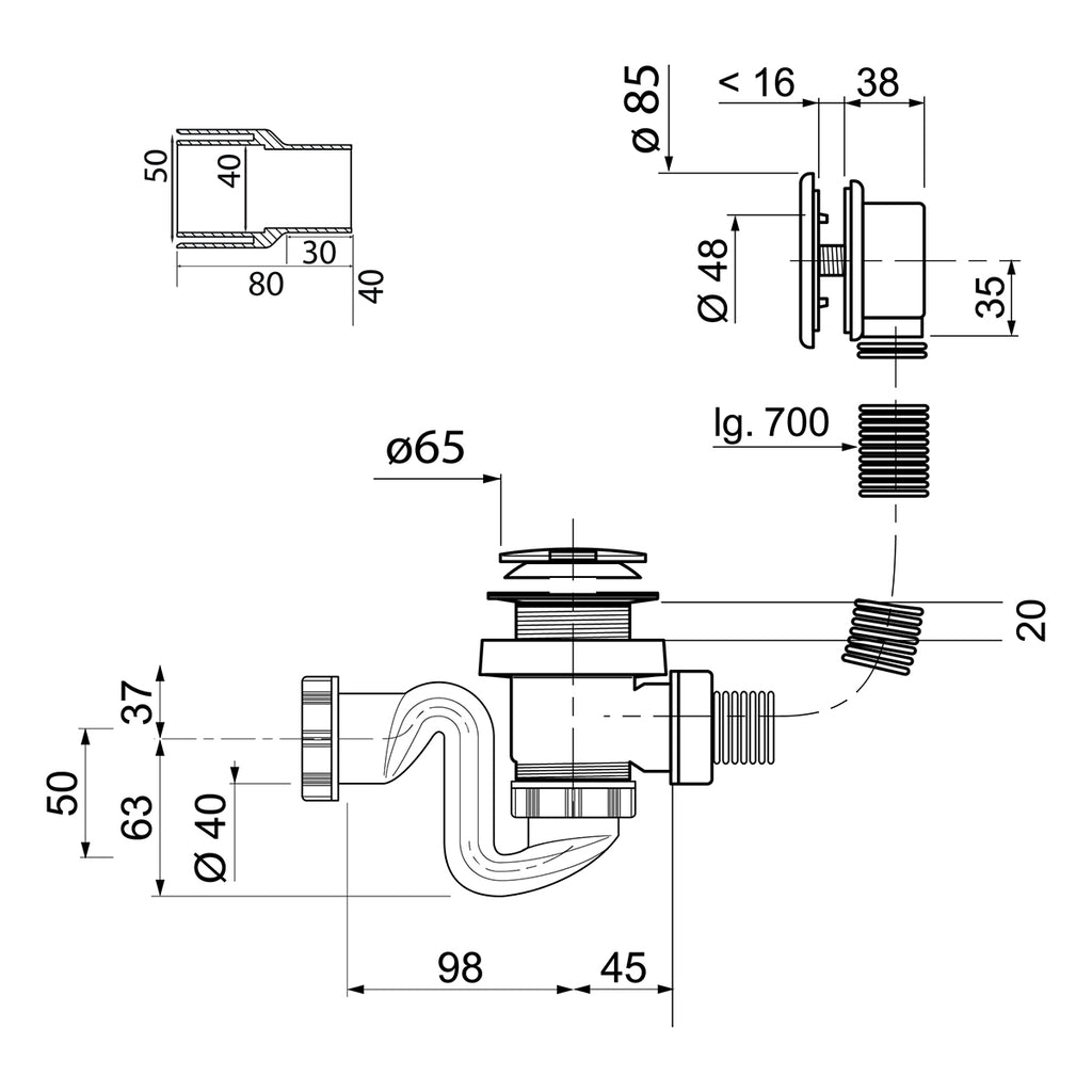 Quick Clac Bath Waste And Elton Trap. * White Quick Clac Waste For Bath. * Overflow Length: 700 Mm. * Height Under The Bath: 110 Mm. * 50 Mm Water Seal. * Flow Rate: 62 L/Min. * Stylish Overflow; Chrome Plated Abs Plastic. * Plug: Stainless Steel. * The Revolutionary Designed Quick Clac Has As Stylish Finish; Suites All Bath Types. * The Mechanism Resists To Over 50;000 Cycles = 35 Years Usage. * Quick Clac Non Wearing Pop Up Bath Waste. * Self Cleaning; Uncloggable; High Flow Rate Trap To 62 L/Min. * Shallow And Orientale Trap For Ease Of Installation. * Trap With Swiveling Outlet And Clean Out Plug. * Packaging Blister